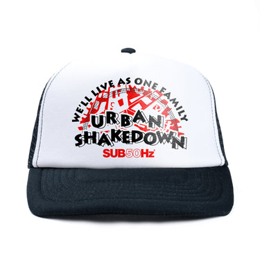 A retro snapback trucker featuring a print on the front lifted and edited from the original artwork of the seminal Some Justice by Urban Shakedown (Micky Finn and Aphrodite).