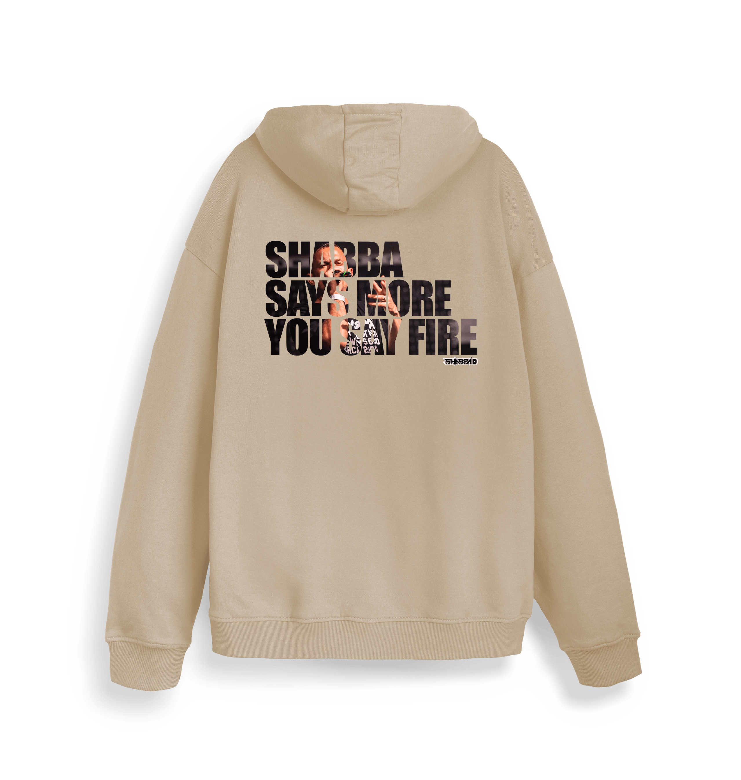 This premium organic hoodie features a Shabba D logo on the chest and a big photo print inside one of the OG MC's lyrics.