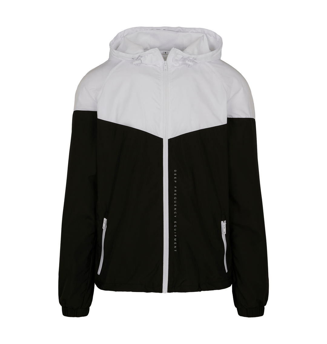 The SUB50Hz Reflective Silver Windrunner features the logo printed large around the hood and a Deep Frequency Equipment logo next to the zip in reflective material for extra pop when the lights hit the dance.