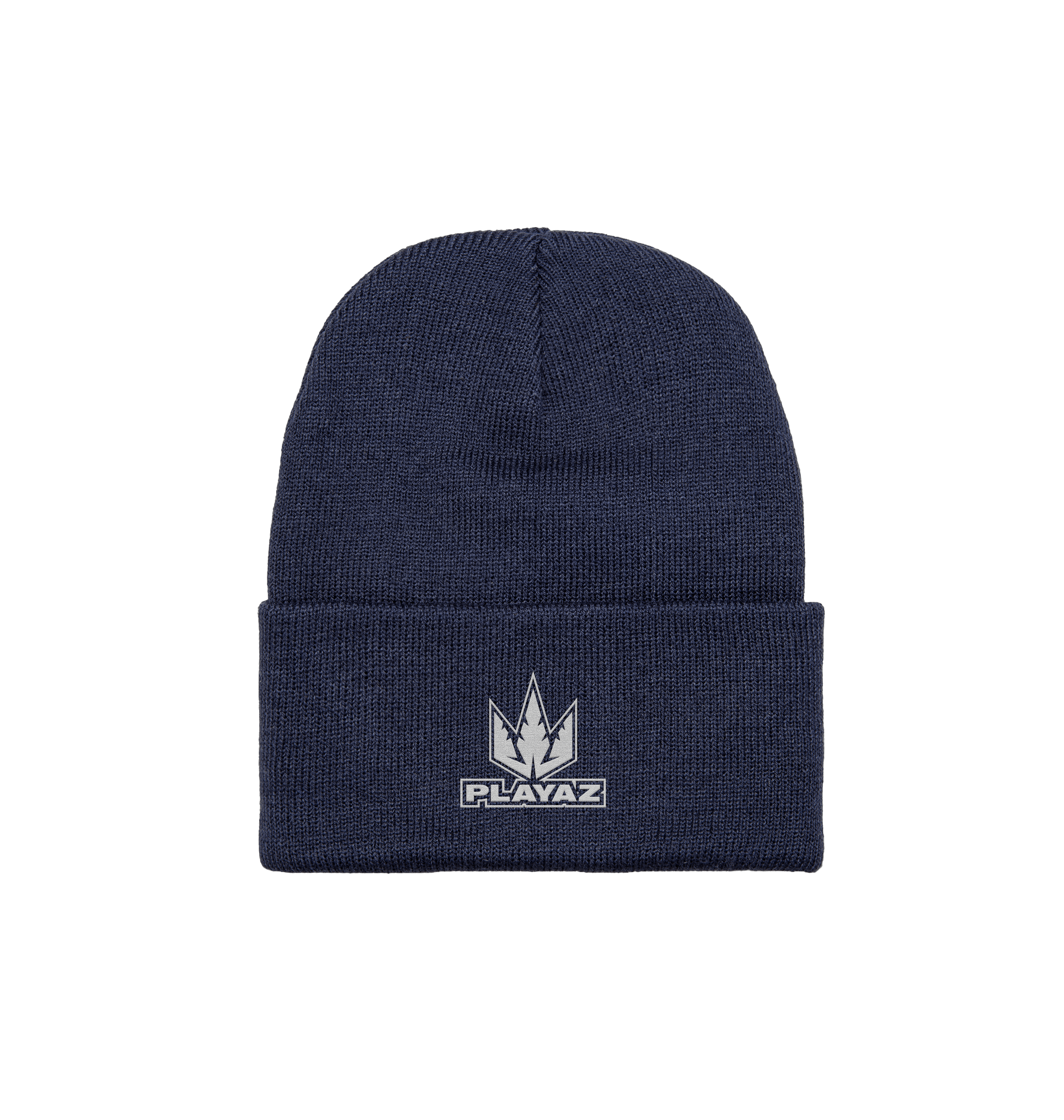 This double layered, navy knitted beanie features an embroidered Playaz logo at the front.