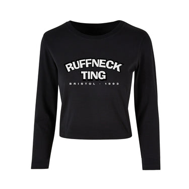 Celebrating 30 years of Ruffneck Ting Records this long sleeved cropped top features the logo used on the original mixtapes as a print on the chest.