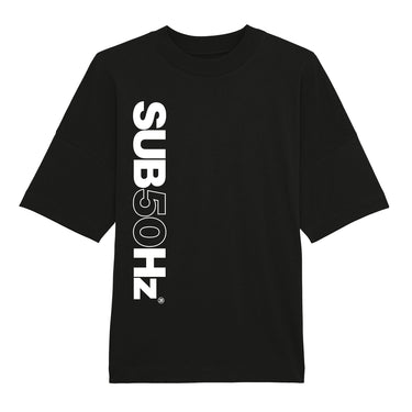 SUB50Hz t-shirts are oversized, boxy and made with heavyweight cotton. If you want a regular t-shirt, you're in the wrong place. This Black 90 tee features a front print only.