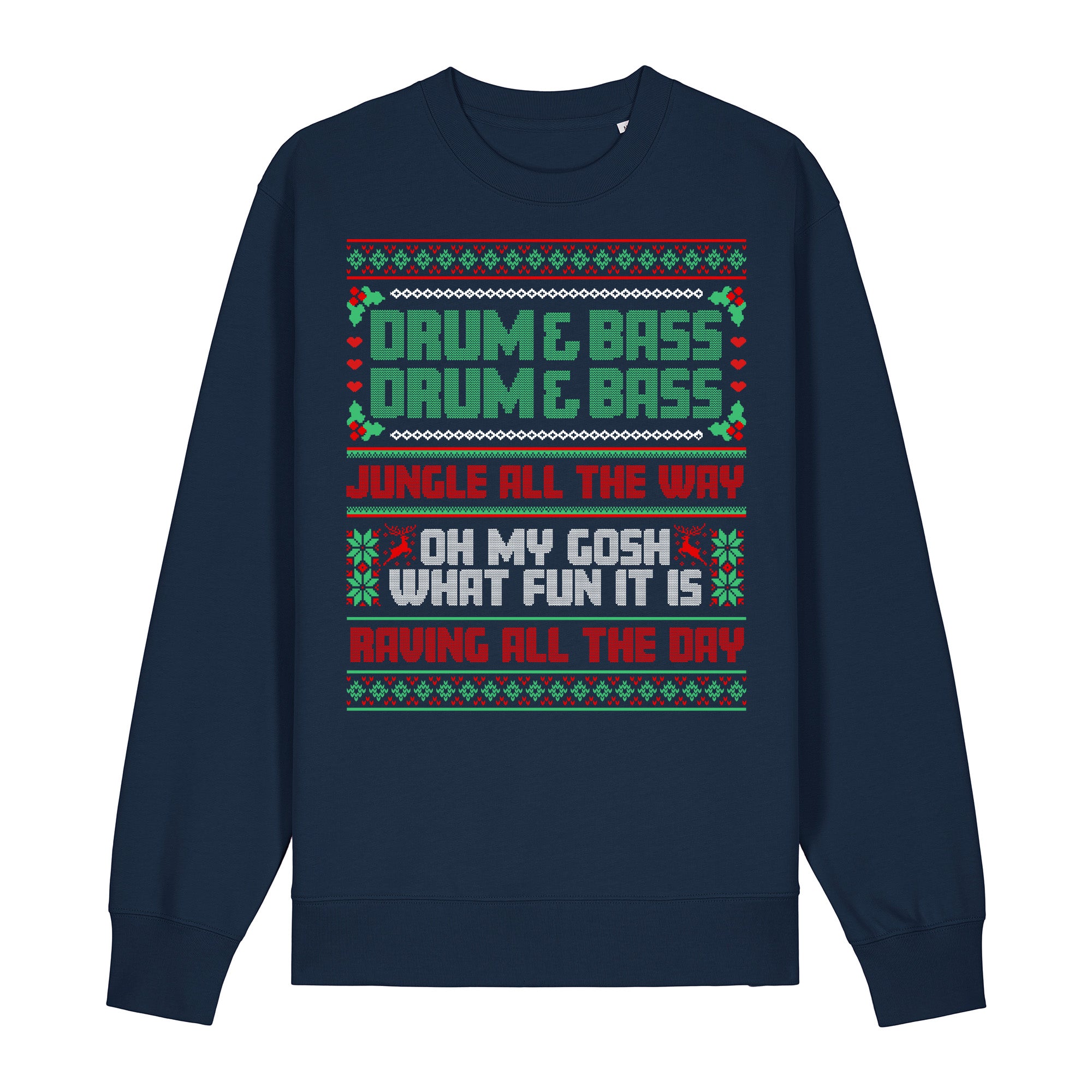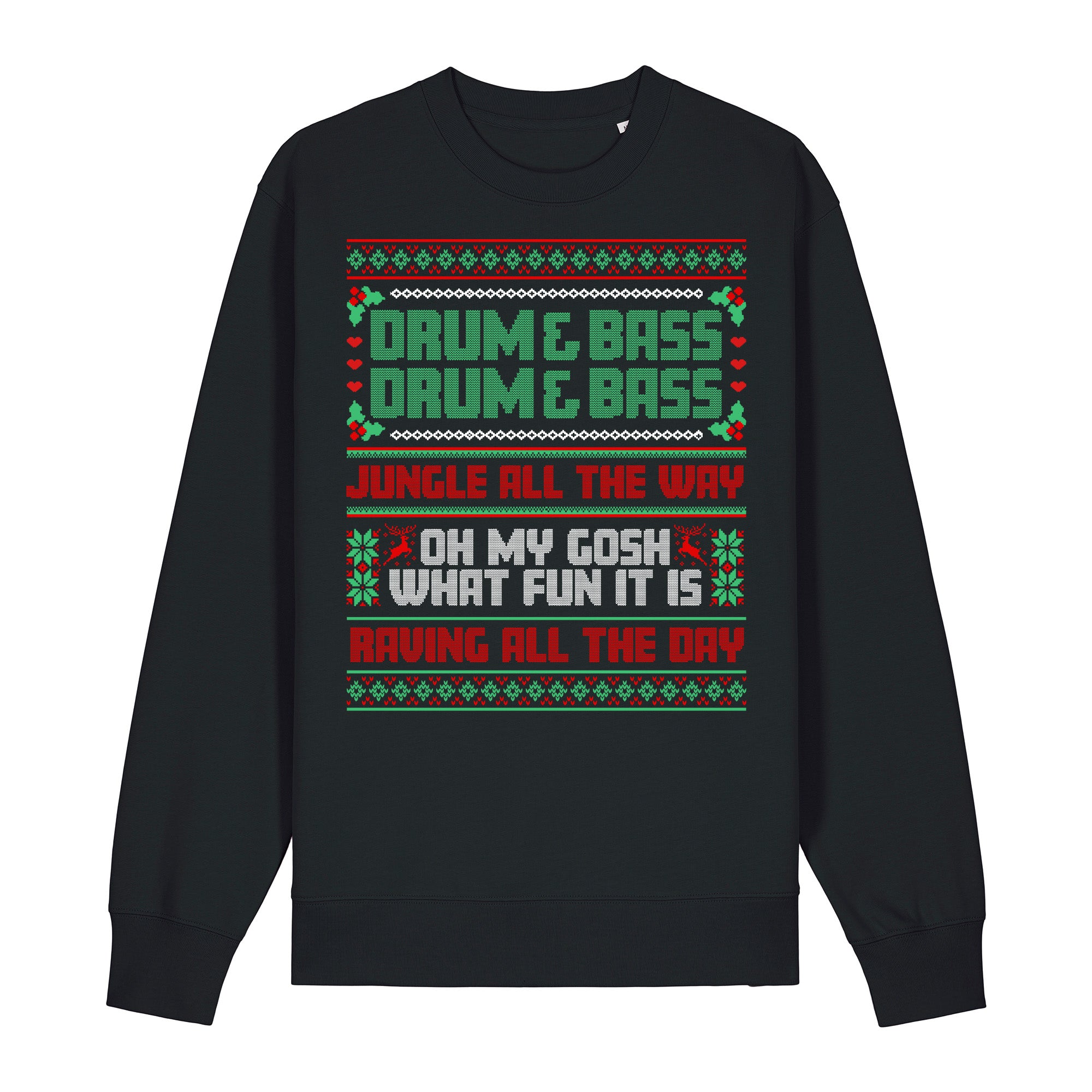 The Drum & Bass Bible Jungle All The Way Christmas sweatshirt is here for 2025 and OH MY GOSH what fun it is.