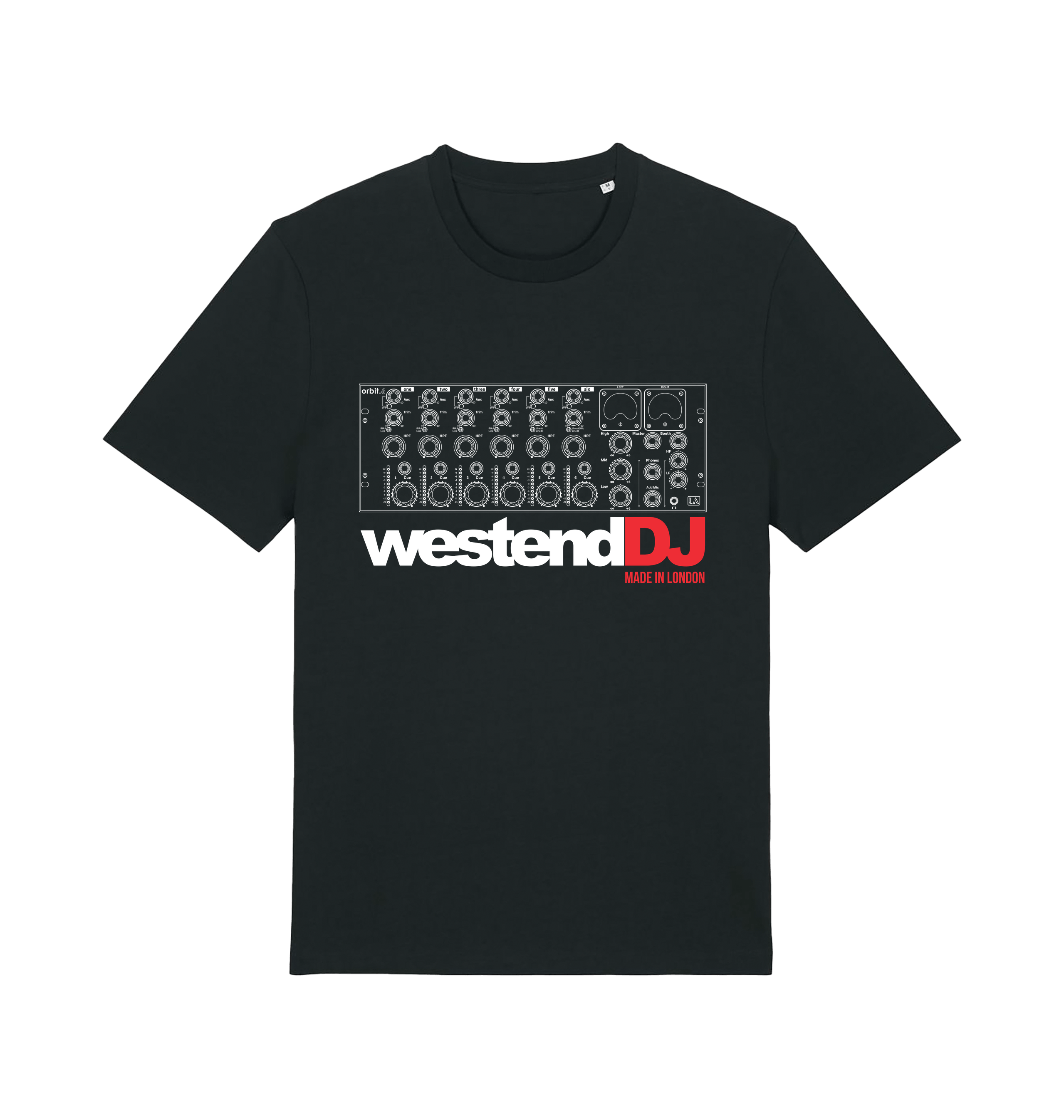 This Westend DJ Outline Orbit black t-shirt features a print on the front.