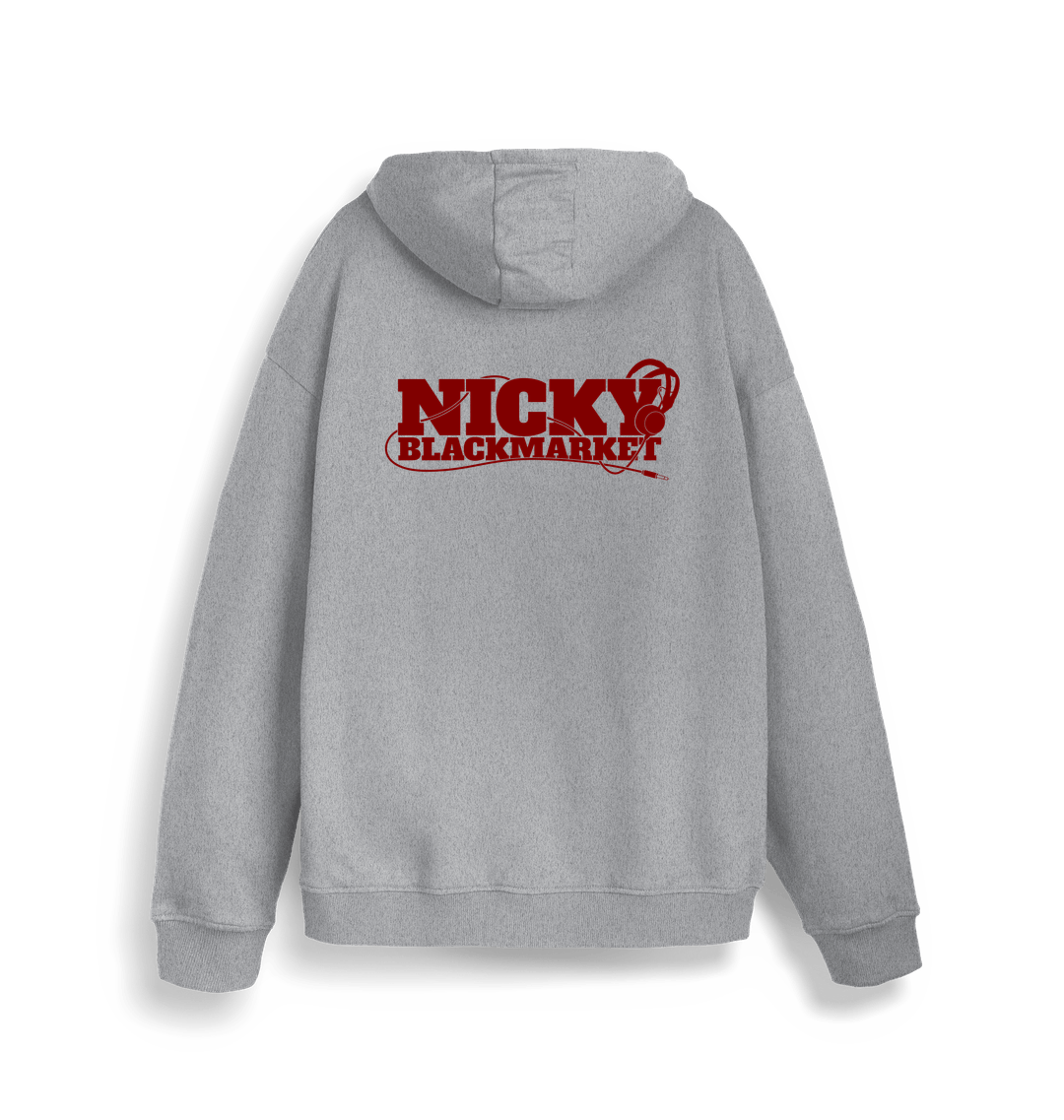 This Nicky Blackmarket Core Heather Grey Hoodie features a print on the front and a big print on the back. Nicky is one of the fathers of this scene, his contribution is enormous. All profits from the sale of products on DFE are shared with the artists.